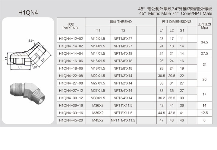 45°弯公制外螺纹74°外锥/布锥管外螺纹