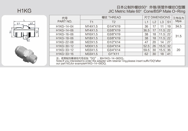 日本公制外螺纹60°外锥/英管外螺纹O型圈